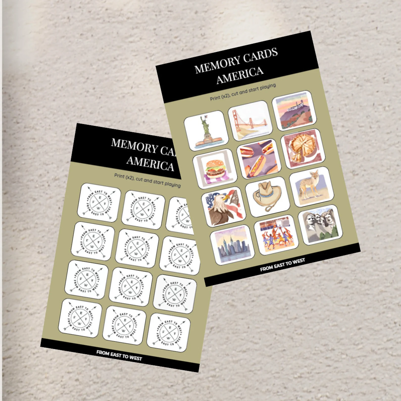Explore the American culture and natural beauty with this unique memory game! Each card is beautifully illustrated with iconic dishes and animals from America. Perfect for memory development, educational play, and exploring one of the world’s most fascinating cultures. Instantly downloadable and ready for enjoyable learning moments!