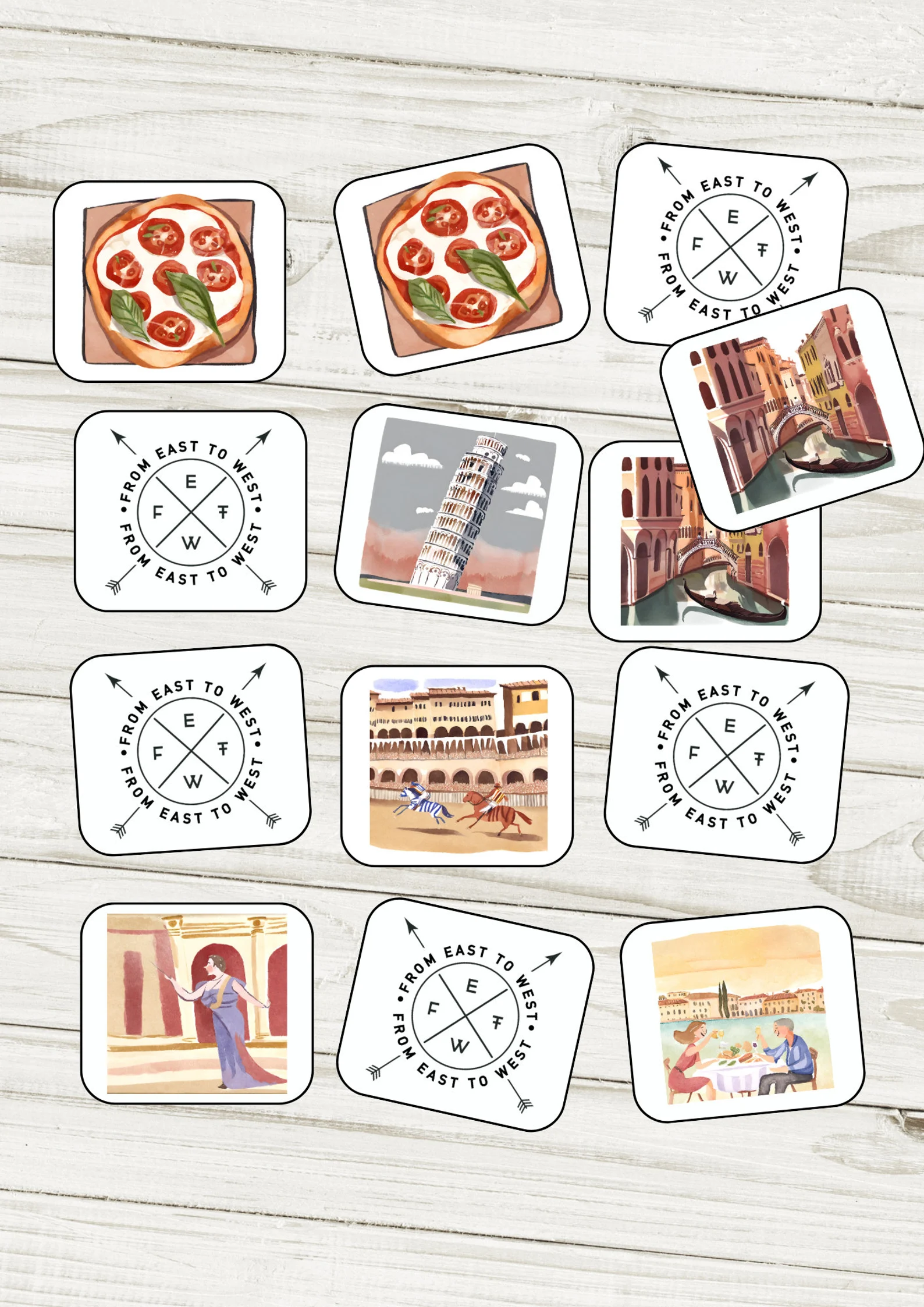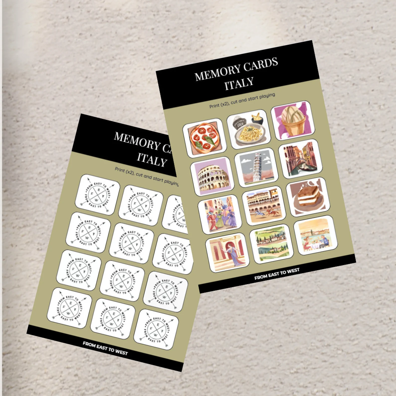 Explore the Italian culture and natural beauty with this unique memory game! Each card is beautifully illustrated with iconic dishes and animals from Italy. Perfect for memory development, educational play, and exploring one of the world’s most fascinating cultures. Instantly downloadable and ready for enjoyable learning moments!
